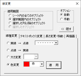 適用範囲内の工程線をすべてリストで選んだ太さにします。