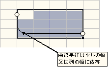 ※ 列の幅と行の幅を比べ、小さい方の幅を半径とします。(図の場合は行の幅が半径になります)