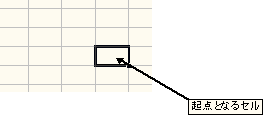 1) まず、作図する場合は、起点となるセルを選択し、そこから範囲選択します