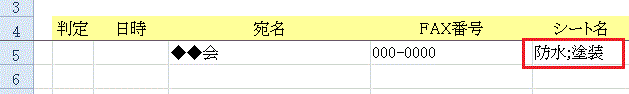 下図場合、[FAX送信表]+[防水]+[塗装]のシートが送信されます。