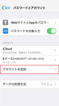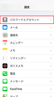 ★iphoneのホーム画面→[設定]→[パスワードとアカウント]→