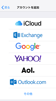 ★[Outlook.com]又は[Google]を選びアカウントの設定を行います。