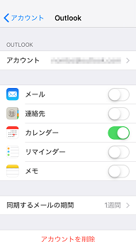 ★追加した後、カレンダーのみ使用したい場合は[アカウントを追加]の画面でカレンダー以外をオフにします。