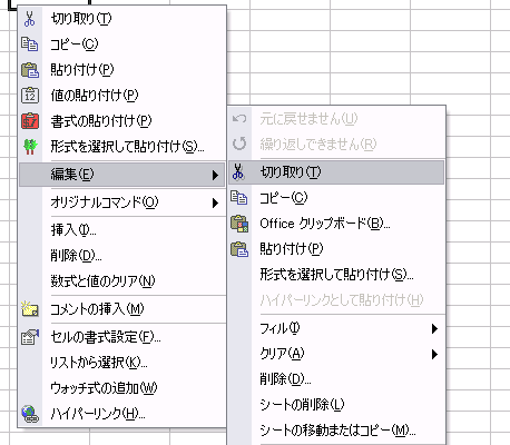 ●セル・行・列・シートの右クリックメニューを編集・変更出来ます。