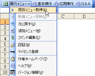 1)「実行メニュー」→「既存メニュー取得」で右クリックメニューの情報を取得します。