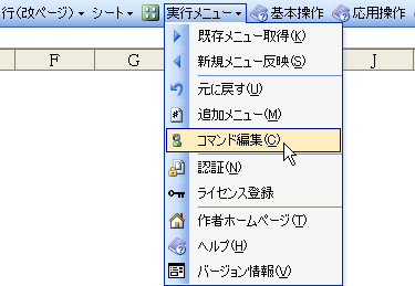2)「実行メニュー」→「コマンド編集」でユーザー設定ダイアログを表示します。